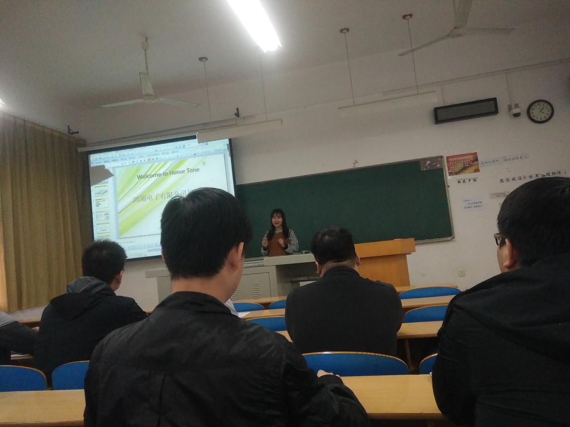 本次宣讲会采用了该公司部门负责人讲解PPT幻灯片加现场投简历笔试的方式完成,来自鸿通电子有限公司的贾小姐就公司发展历程,公司组织结构,从事领域等方面,给学生做了简单介绍,该公司招聘岗位包括初级电子工程师、初级自动化工程师等。