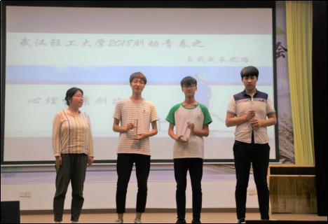 (文字;杨芬婷 摄影;毛潇晗)2018年5月26日晚6点半,武汉轻工大学2018年剧动青春之“自我成长之路”心理情景剧决赛于常青校区科技报告厅举行。此次决赛邀请了学工处副处长李辉、学工处王平老师、心理教育与咨询中心专职教师李磊老师以及其他各院心理负责老师作为嘉宾评委。
